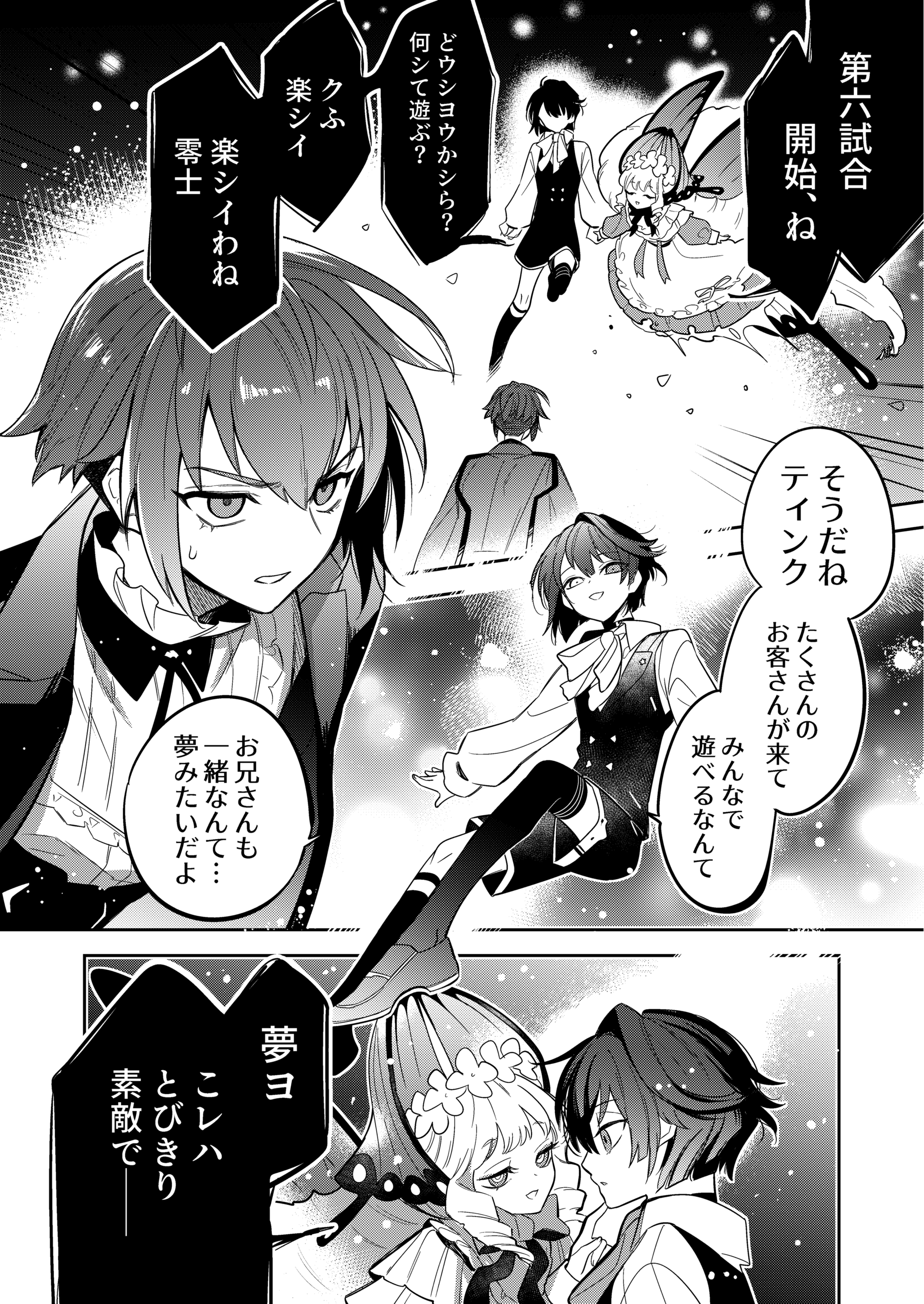 謎のビスクドールに導かれて訪れた夢の世界《Never↓and》で、主人公たちはそれぞれ少年の姿に変えられ、現実で強く願った望みを叶えるために戦うことを義務付けられています。
