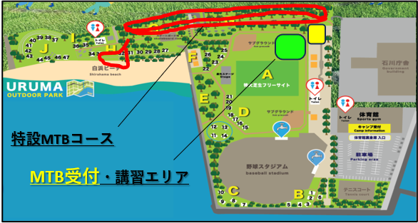 両日ともに、石川公園に3本の特設MTBコースを設置し、初心者講習も用意し、常時試乗体験を行いました。