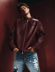 ・ロゴとカモメ刺繍 レギュラーフィット レザージャケット \154,000