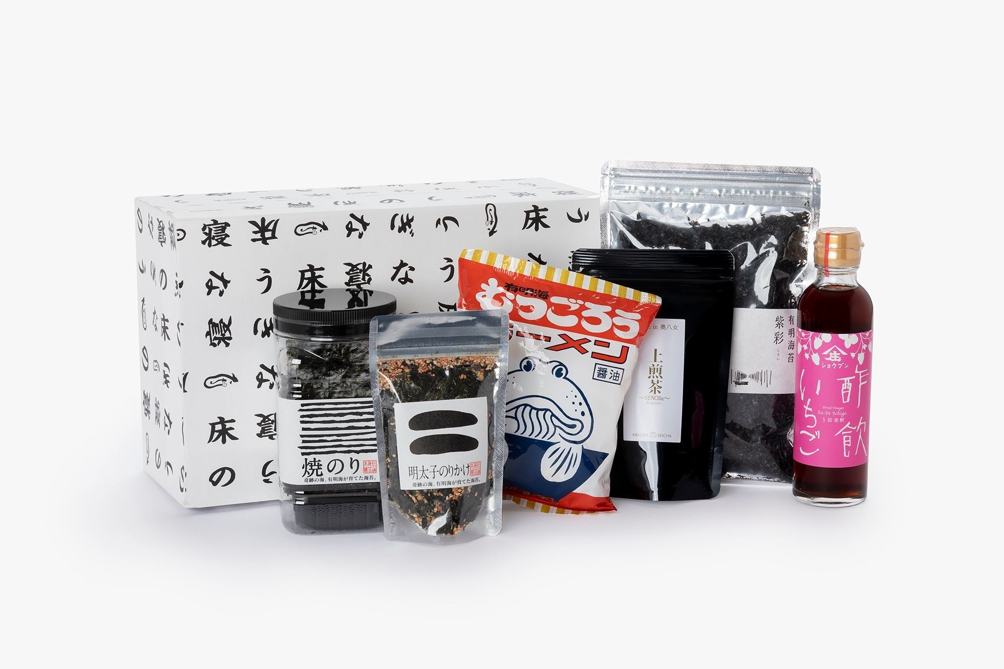 つくりて:アリアケスイサン(福岡県大川市)、江の浦海苔本舗(福岡県みやま市)、庄分酢(福岡県大川市)、角田製茶(福岡県八女市)、やまひら(福岡県柳川市)