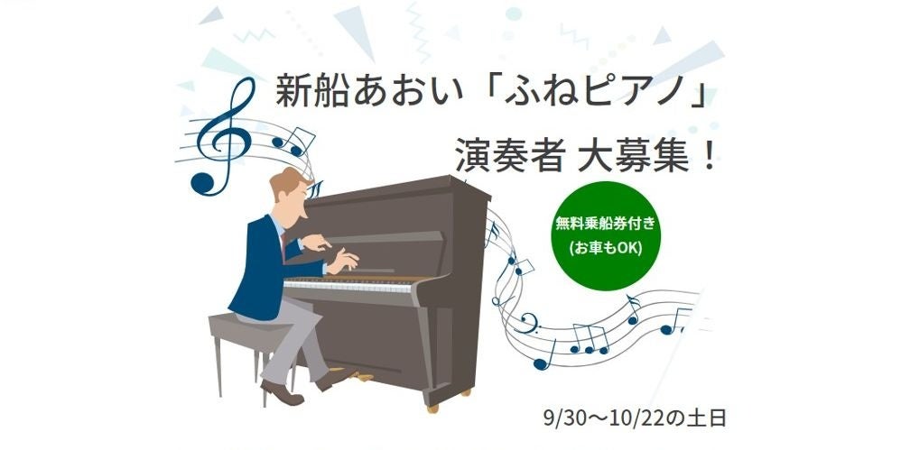 これを記念した、就航一周年 特別企画の第1弾として、「ふねピアノ演奏者 大募集」を下記の通り行います。