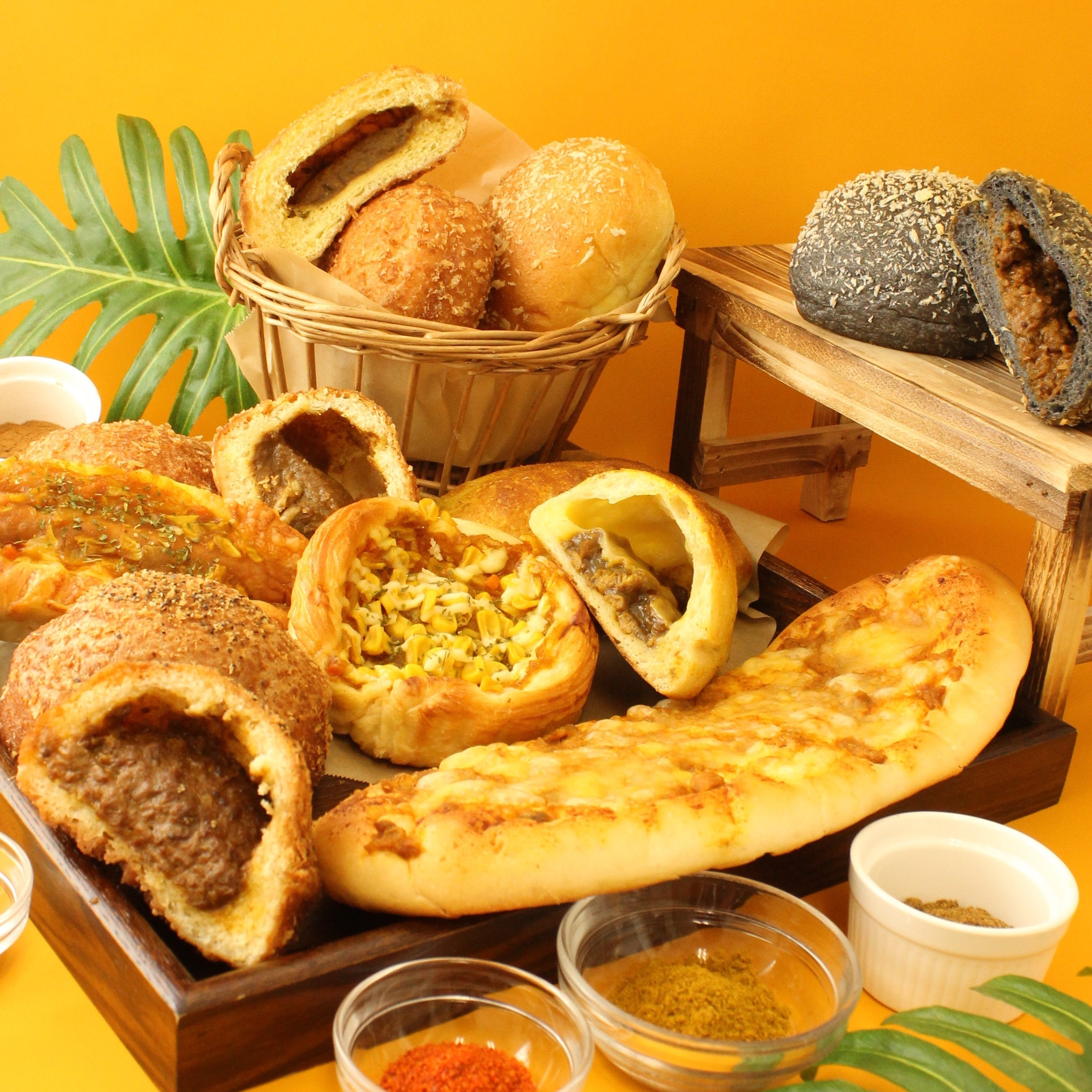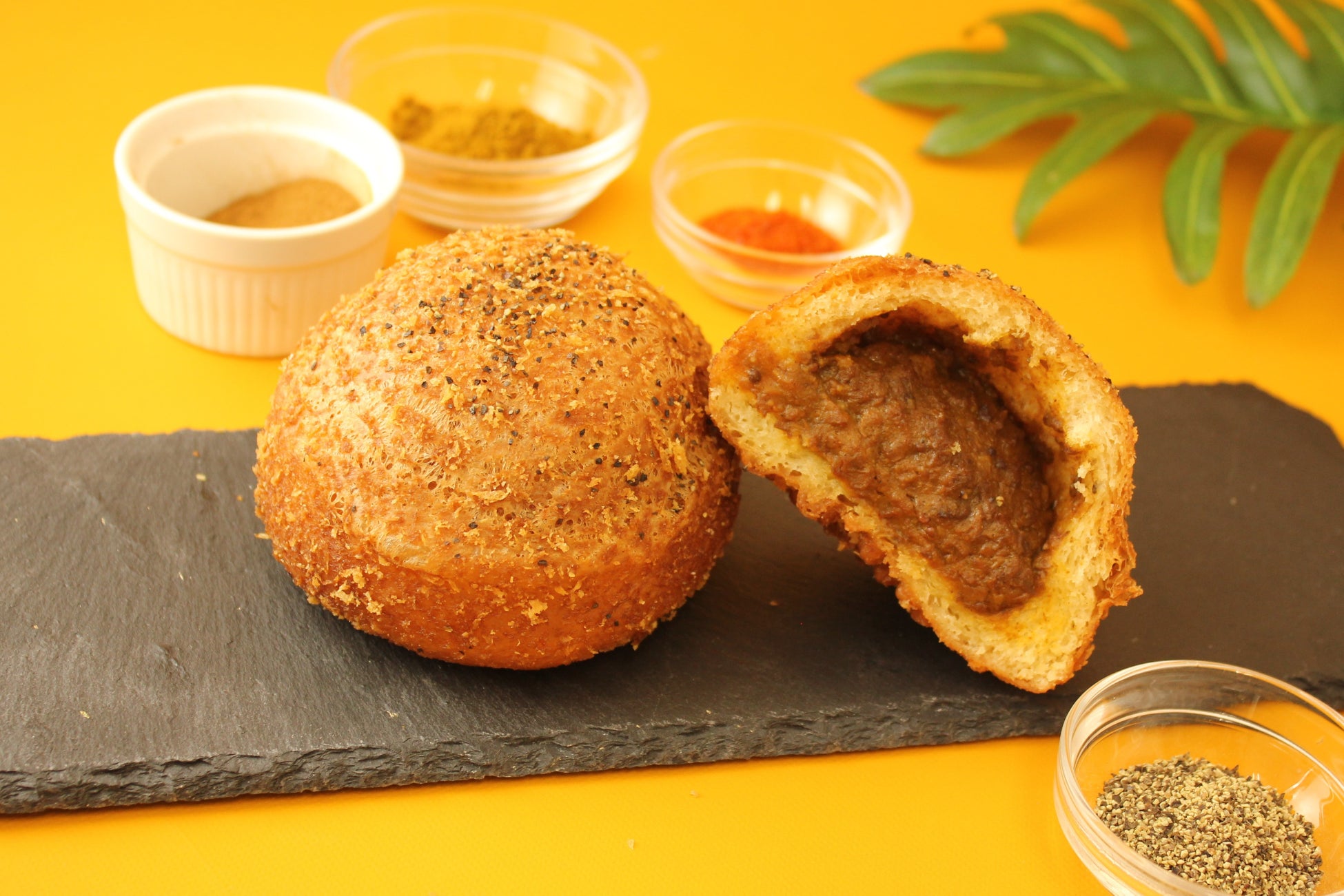 スパイスの風味とブラックペッパーのアクセントがピリッと後を引く、辛口のキーマカレーパン。暑い夏、よりいっそうの刺激を求めている方に、ぜひ。
