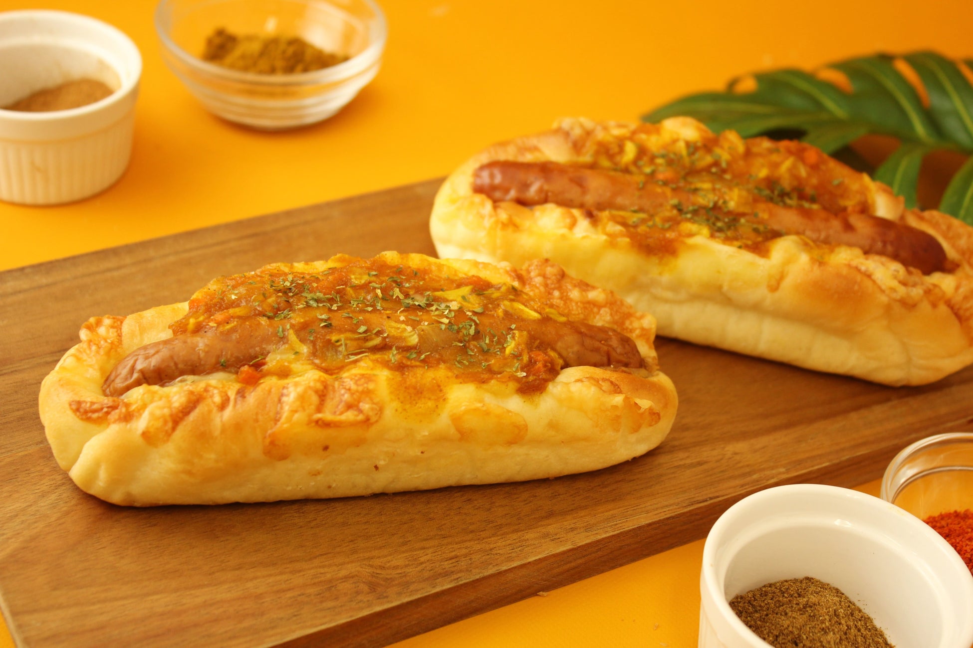 ふんわり生地にウインナーをのせ、キャベツ、たまねぎ、にんじん使用のカレー味のフィリングをトッピング。食べ応えのあるウインナーとカレーに野菜の軽さが加わって、暑い日にも元気をもらえる組み合わせです。