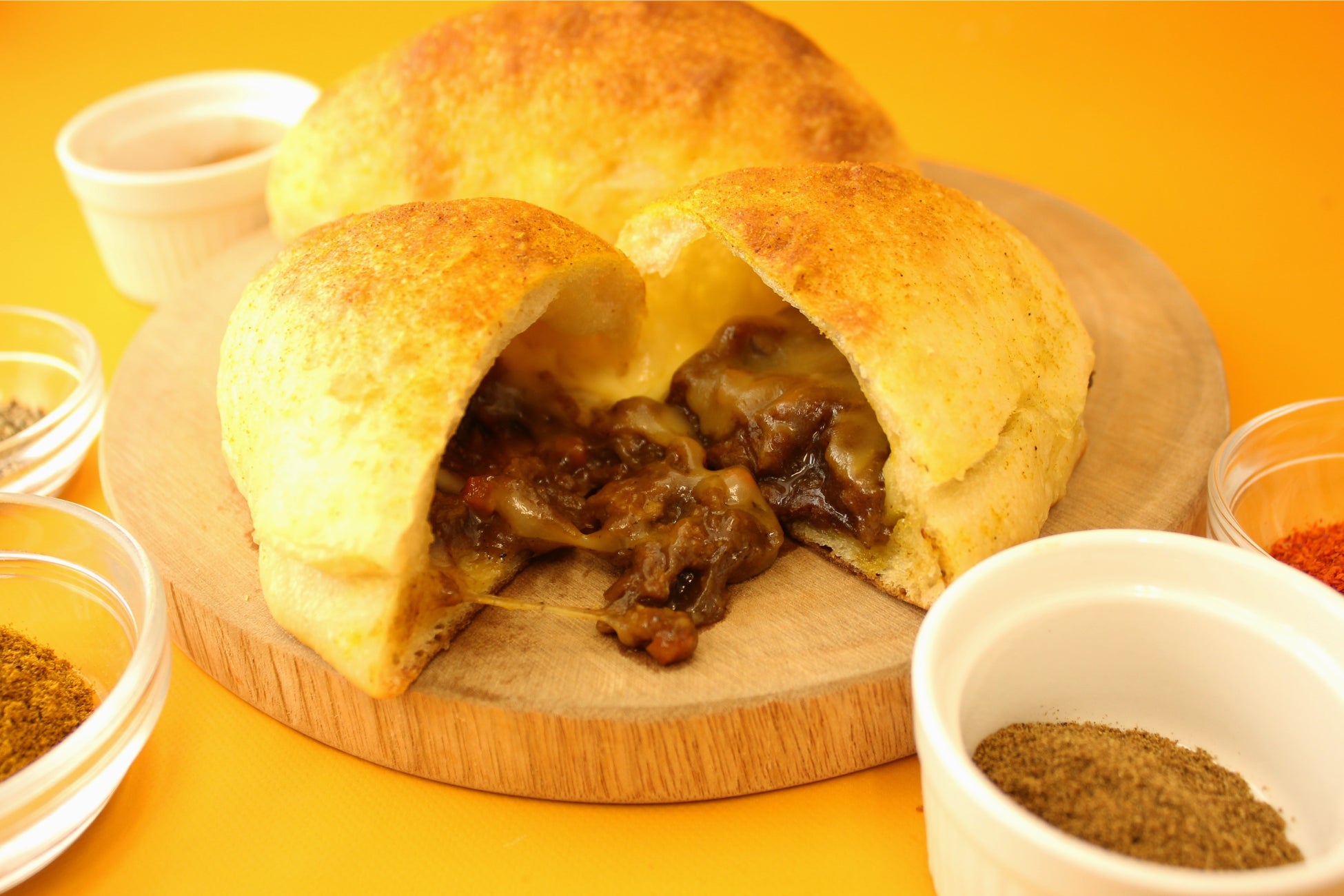 国内産もち小麦と、デュラム小麦使用のサワー種を配合したもっちり噛み応えのある生地に、シュレッドチーズとカレーフィリングを包みました。カレーパウダーでアクセントをつけたもっちり生地は、噛むほどに香りと味わいを楽しめます。