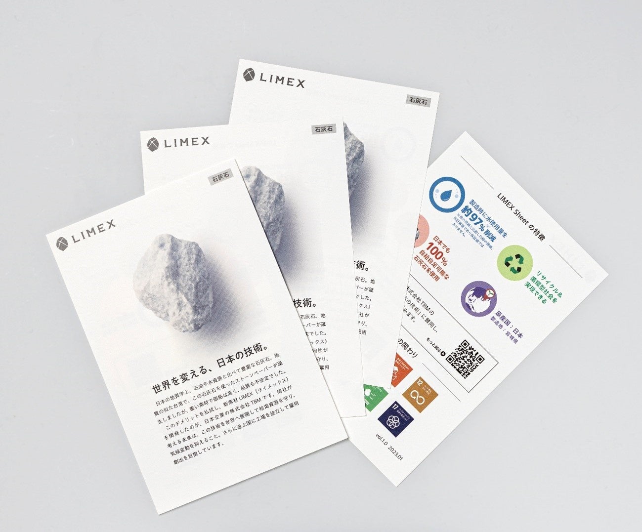 特徴1.石灰石からできた新素材「LIMEX Sheet」の利用(対応機械:オフセット枚葉機&オンデマンド機)
