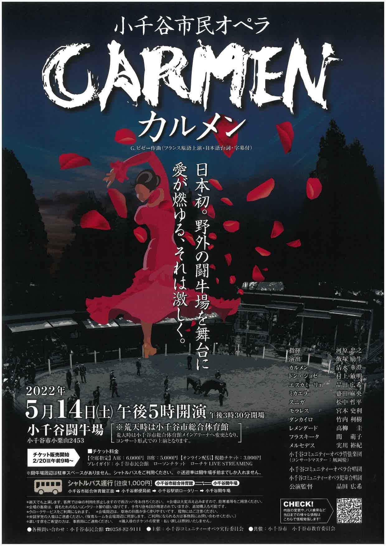 G.ビゼー作曲のオペラ「カルメン」に【 牛の角突き文化 】が受け継がれる新潟県小千谷市の要素を取り入れ、小千谷でしか観ることのできない舞台をお届けします。