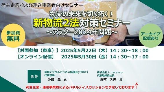 本セミナーでは、短期間で対策を講じるためのポイントを解説するため、一般社団法人 運輸デジタルビジネス協議会(TDBC)(代表理事:小島 薫氏)、株式会社traevo(代表取締役社長:鈴木 久夫氏)をゲストにお招きし、具体的な実践事例などを深堀りします。