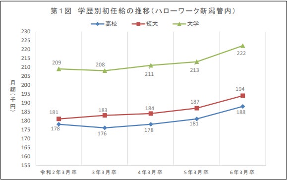 キャリア初期の若手にとって、最初の数年は成長を大きく左右する重要な時期です。ところが新潟における大学卒の初任給は平均22.2万円(ハローワーク新潟調べ)。決して余裕がある水準ではなく、若手が「挑戦より生活を優先せざるを得ない」現実もあります。