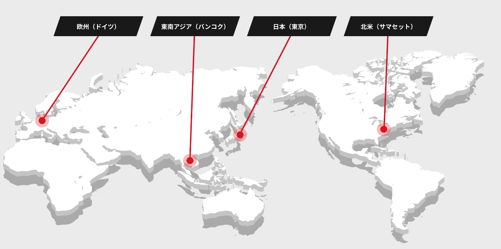 当社の強みとして、日本(東京)に加え、北米(USA・ニュージャージー州)、欧州(ドイツ・デュッセルドルフ)、東南アジア(タイ・バンコク)等、各地に派遣している専門部隊・駐在員が、現地でビジネス展開している点が挙げられます。海外サプライヤーと密に連携しているため、品質管理・納期調整・在庫管理・トラブル対応など、国内製品と変わらない品質・対応が実現できます。さらに、不安定な為替等でハードルのあった海外製品に対してアドバンテージを持っており、ジャンボロールの提供だけでなく、特殊な印刷方法に対応したコーティング加工や、小巻やダイカットといった小ロット注文が可能です。