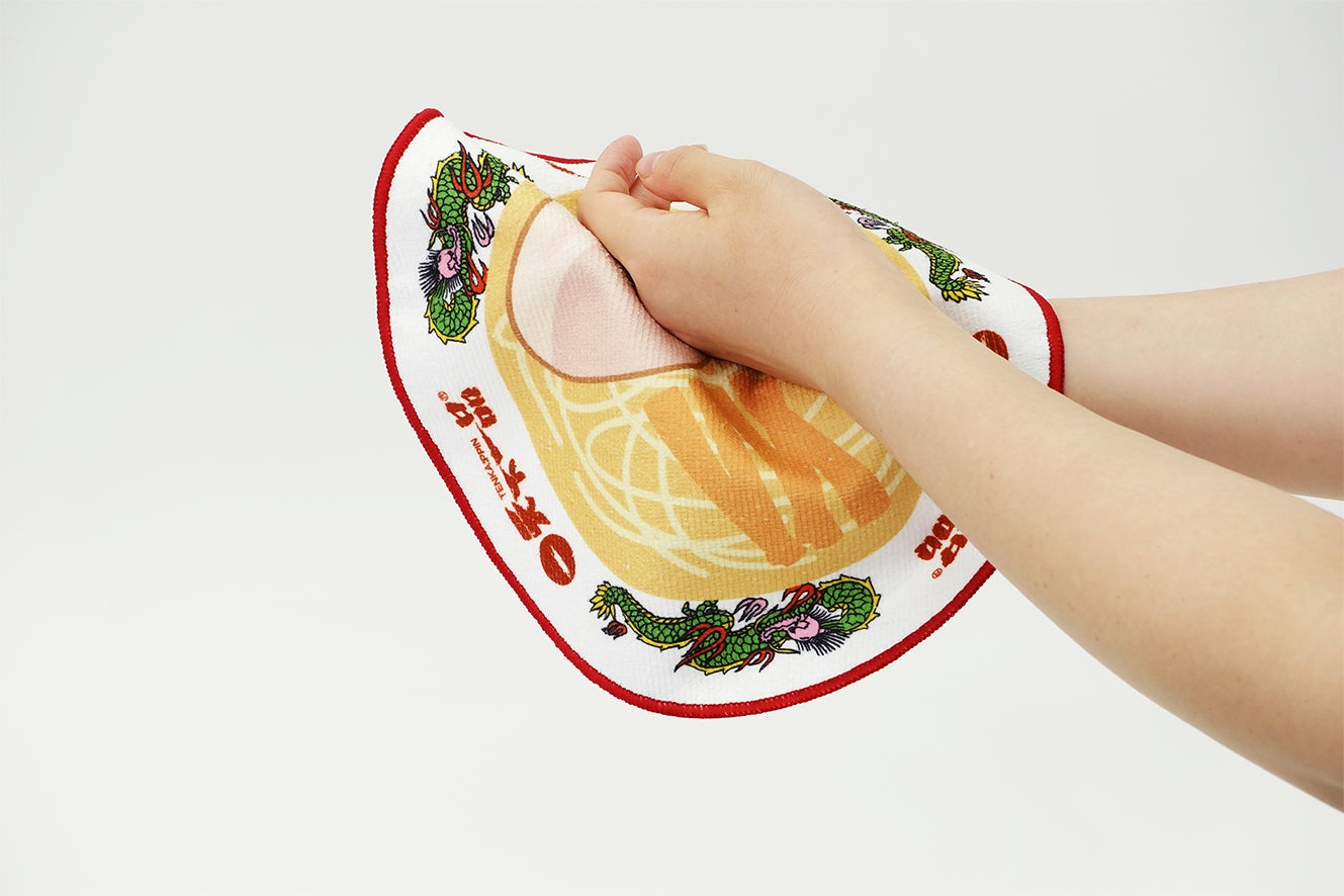 「天下一品」の『アプリでスピードくじキャンペーン』でもらえる「“家麺がおいしく作れる♪”計量カップ」「“いつでも一緒♪”こってりタオルハンカチ」を製作