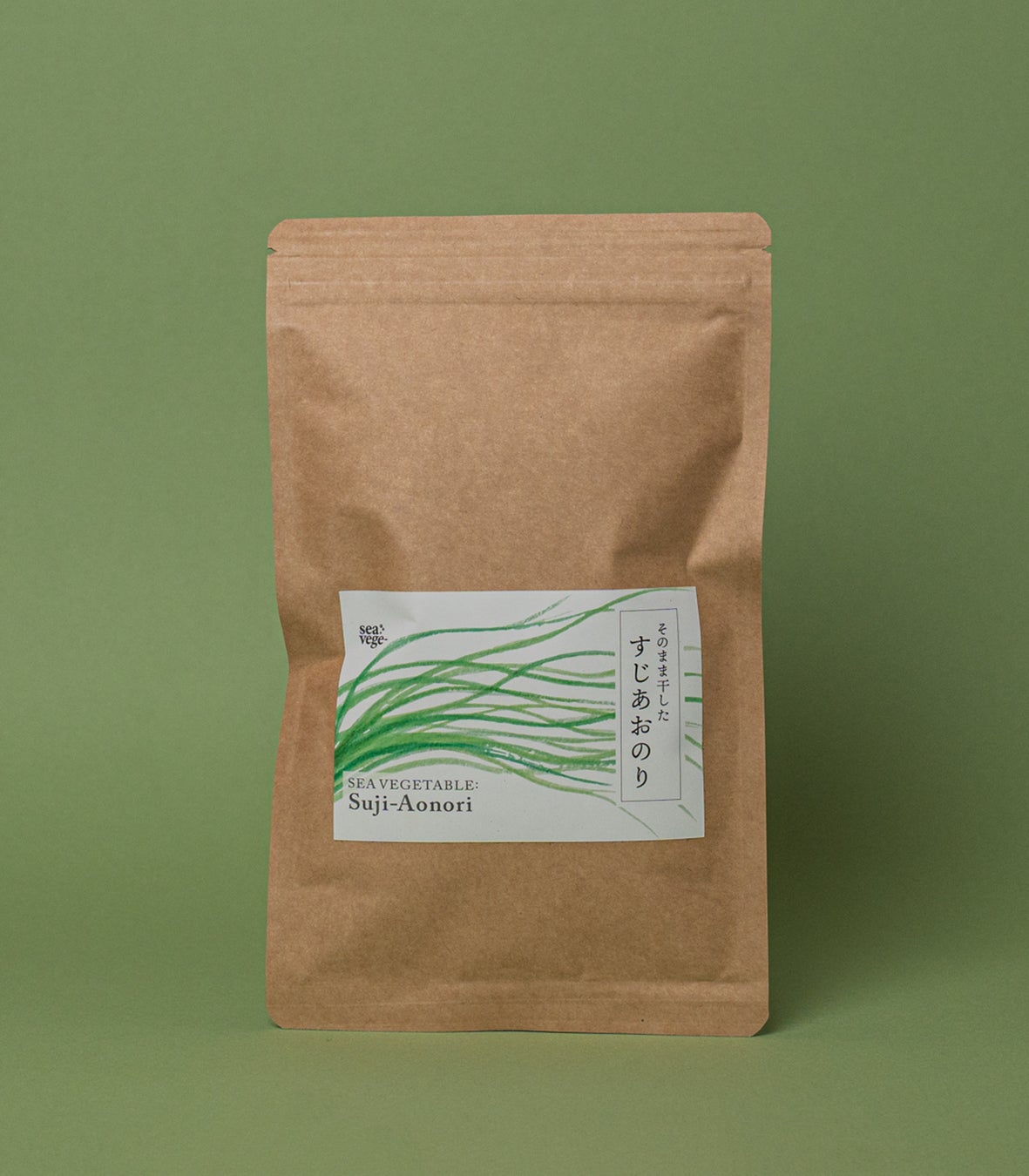 青のりの中で最も香り高いと言われる品種で、海藻の中でもその存在は際立ちます。新鮮なうちに乾燥させることで雑味を抑えた、繊細でさわやかな、スジアオノリ本来の香りをお楽しみいただけます。
