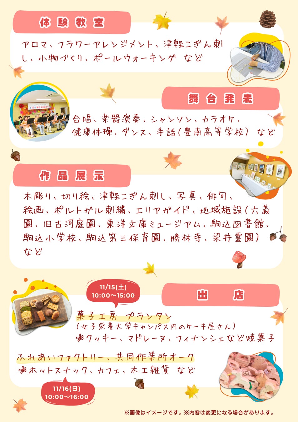 駒込地域文化創造館は、地域の皆様に開かれた「交流と創造の場」です。この機会にぜひご来場いただき、文化の秋を満喫してください。