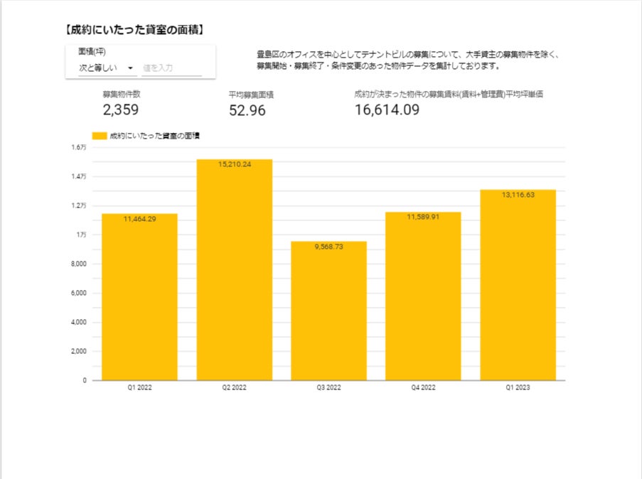 2023年第1四半期の成約面積は、13,050坪と前第1四半期を上回る状況です。