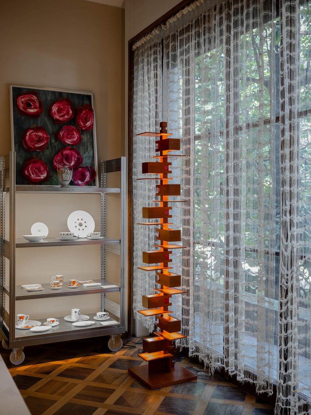 展示空間のインテリアデザインは英国の著名デザイナー フェイ・トゥーグッド氏が手がけ、彼女が厳選したYAMAGIWAの照明が放つ繊細な光は、Villa Borsaniの独特な建築空間と調和し、静謐で洗練された雰囲気を生み出しました。