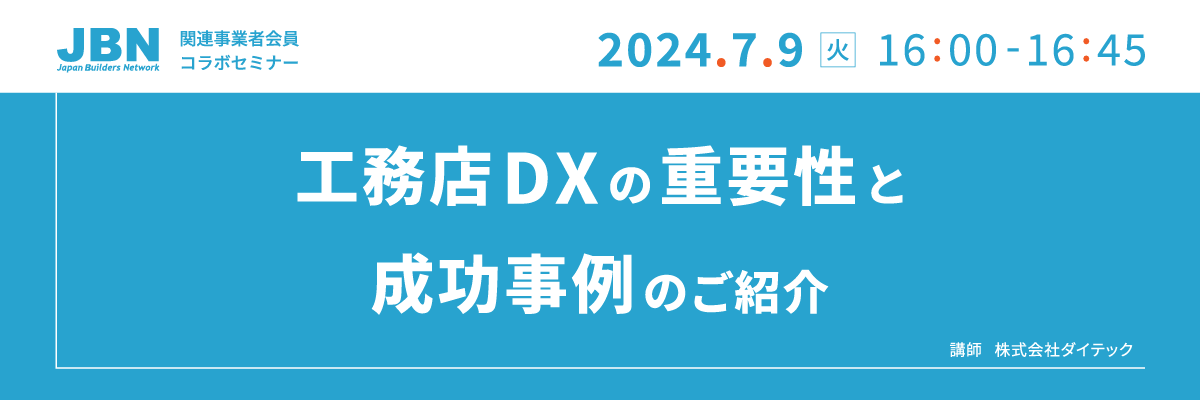 【7月9日開催】JBN関連事業者会員コラボセミナー「工務店DXの重要性と成功事例のご紹介」を開催します