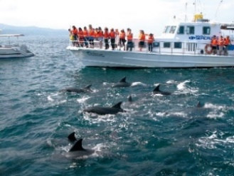 天草に生息する野生のミナミハンドウイルカに出会うことができます。