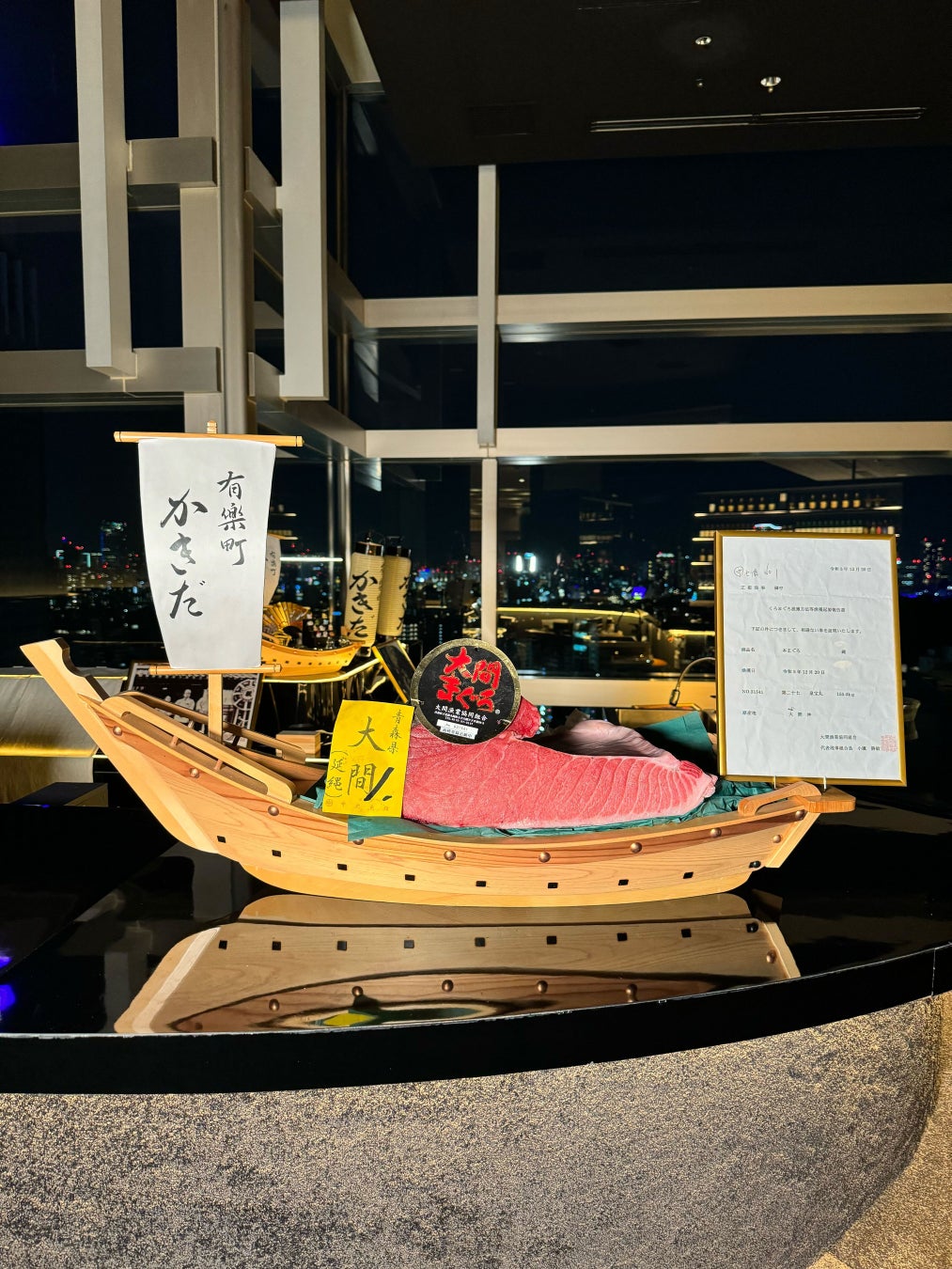 しかし、『有楽町かきだ』大将はこの本マグロ戦国時代突入を事前予知しており、昨年末に大間の一番マグロを1本買いしております。