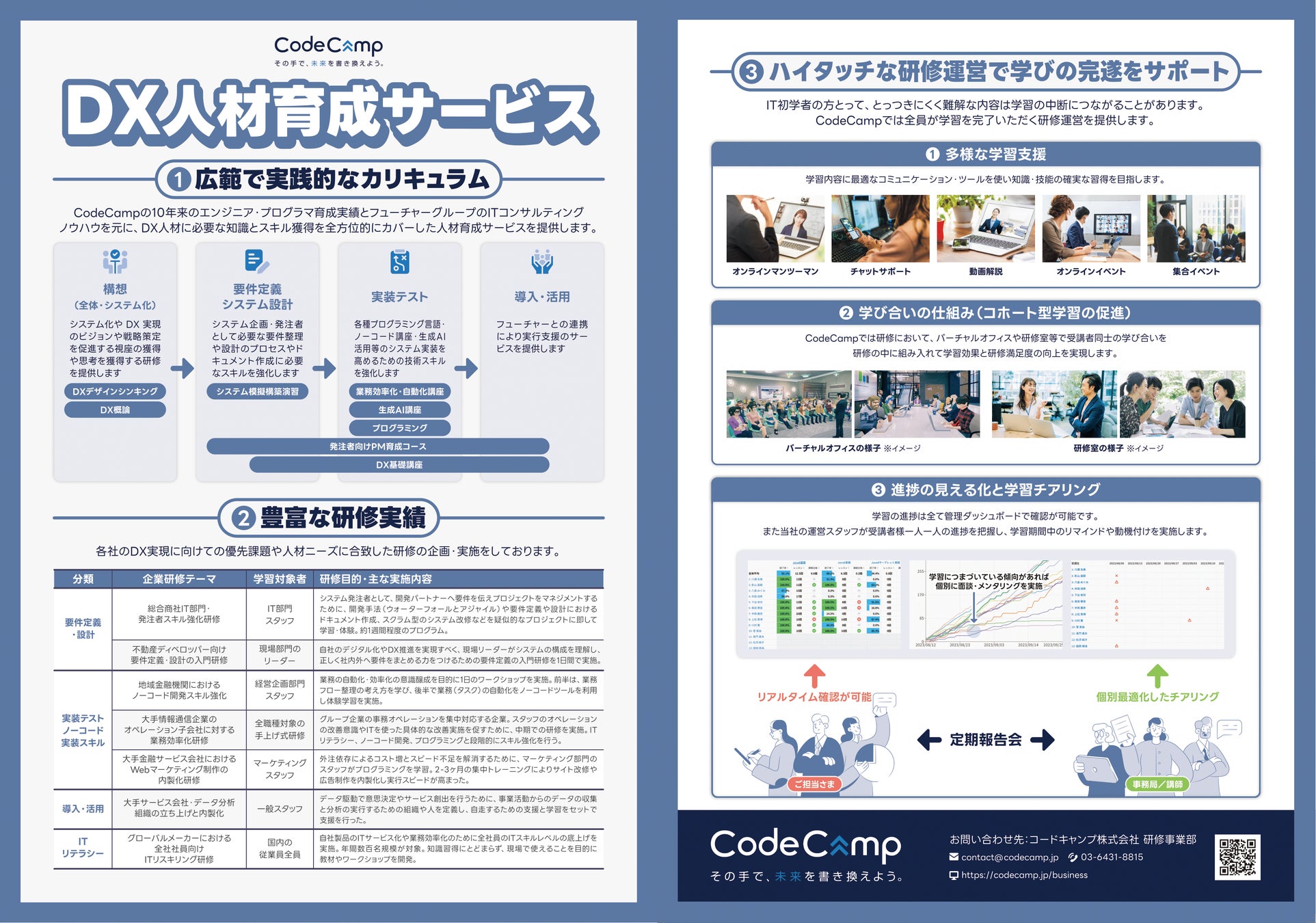 実務に繋がるリスキリング研修(https://codecamp.jp/business/dx)