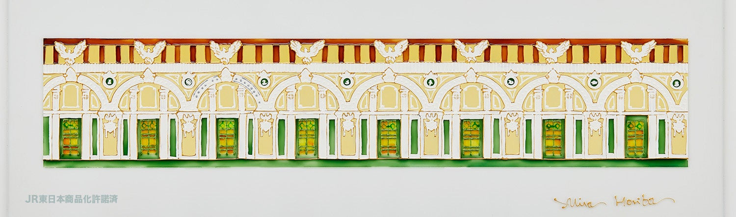 印象的な東京駅のイラストは、グラスペイントアーティストのAlisa Horitaが手掛けました。