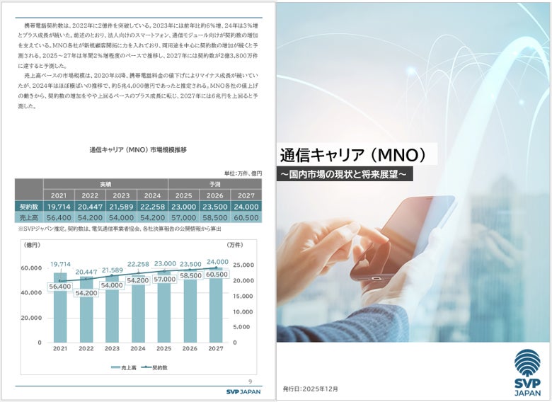 会員制マーケットリサーチサービスを提供している、株式会社SVPジャパン(本社:東京都中央区、代表取締役社長:橋本 雅、以下「SVPジャパン」)は、本日、SVP注目市場分析レポート「通信キャリア (MNO)-国内市場の現状と将来展望-」を、会員企業向けに公開いたしました。
