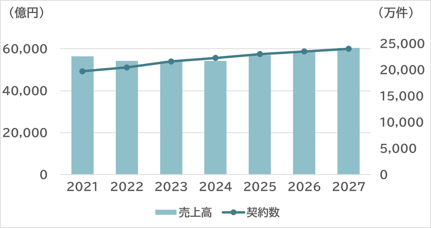 通信キャリア(MNO)は、スマートフォンをはじめIoT製品のデータ通信など幅広い分野で利用が拡大し、社会・経済活動を支える基盤となっている。MNO(Mobile Network Operator)とは、総務省から周波数の割り当てを受け、自社で基地局や通信網を保有して携帯電話サービスを提供する事業者を指す。国内ではNTTドコモ、KDDIグループ、ソフトバンク、楽天モバイルの4社が該当し、それぞれが全国規模で通信サービスを展開している。個人向け契約はすでに飽和しているが、法人向けスマートフォンやIoT機器向け通信モジュールの契約増加により、総契約数は拡大を続けている。携帯電話料金の引き下げにより売上は一時的に縮小したが、2024年に底打ちし、2025年以降は値上げや契約増を背景に緩やかな回復が見込まれる。さらに、DX推進やIoT分野の拡大が通信需要を押し上げており、MNO各社は法人領域を中心に新たな収益機会の創出を進めている。