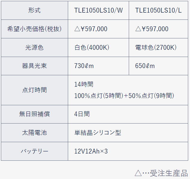 光源色は白色(4000K)と電球色(2700K)の2種類を商品展開します。