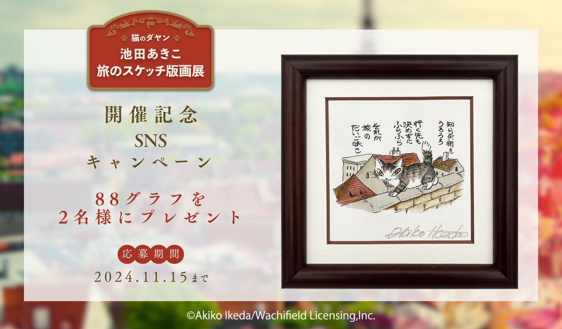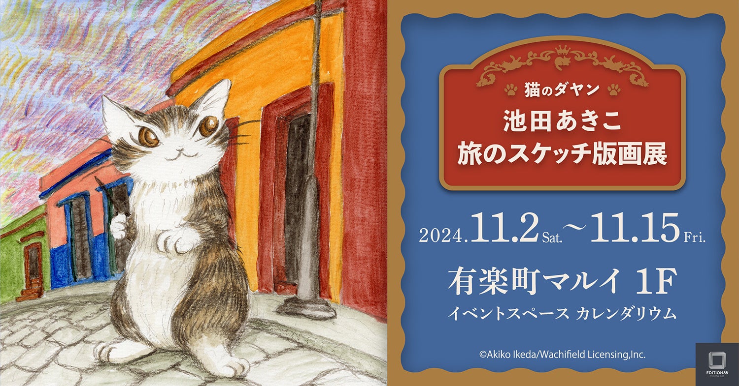 株式会社VISION8(EDITION88アートギャラリー)は、2024年11月2日(土)~11月15日(金)に有楽町マルイ(東京都)にて、「猫のダヤン 池田あきこ 旅のスケッチ版画展」を開催いたします。