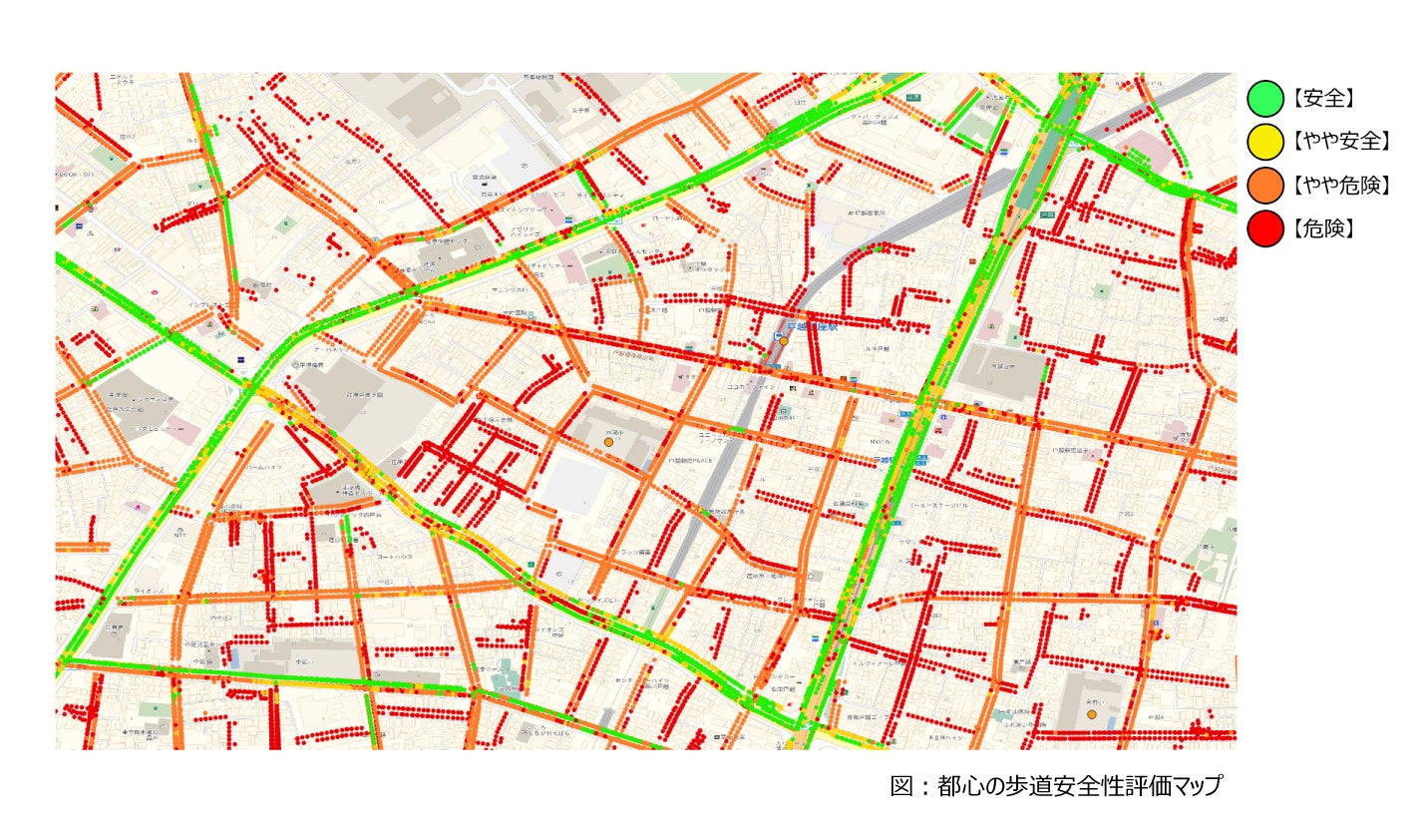将来的には人流データを活用し、全国網羅的な歩道の安全性評価マップを作成していく予定です。