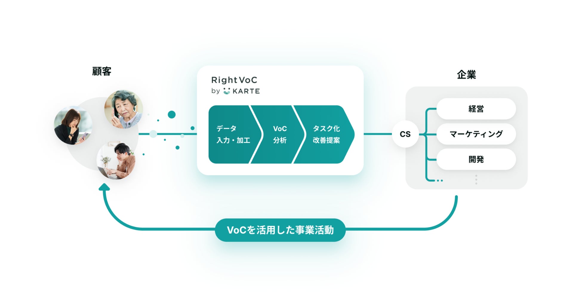RightVoCは、コンタクトセンターに集まるご意見やお問い合わせなど、すべてのVoCデータの加工・分析、示唆出しから改善施策の提示までを生成AIを用いてワンストップで自動化できるほか、示唆や改善施策を各部署とスムーズに連携する機能を有するプロダクトです。なお、今後、同社が導入済みの「RightSupport by KARTE(以後、RightSupport)」との連携を通じて、VoC分析で得た示唆をWebサイトの体験改善や自己解決促進施策の強化に反映することも可能となります。