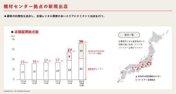 今期中にパートナーと連携した足場レンタルサービス「ASNOVA STATION」も含め、合計36拠点で足場をレンタルできる環境を整えてまいります。