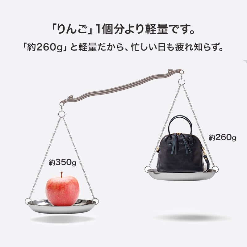 必需品をコンパクトにしまえるサイズ感と、約260グラムという軽さでデイリーに活躍します。