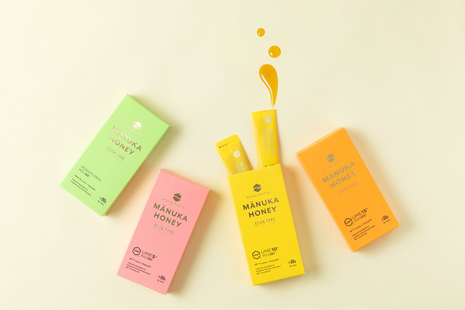1998年の創業以来、日本におけるマヌカハニー専門店の草分け的存在として、ニュージーランド産マヌカハニーの輸入販売を手がけてきた株式会社ハニーマザー(所在地:兵庫県神戸市東灘区御影/代表取締役:西田智祐)は、7月より個包装のスティックハニー(10g)8本入りボックスのラインナップを1種から4種に拡充します。マヌカハニーのグレードごとに色分けされたスタイリッシュなパッケージで、「選べる・持ち運べるサプリ感覚」をご提供するとともに、ギフト需要にも対応。「1日ひとさじのマヌカハニー」という健康習慣が、どなたにも手軽で身近なものとなるきっかけをご提供します。