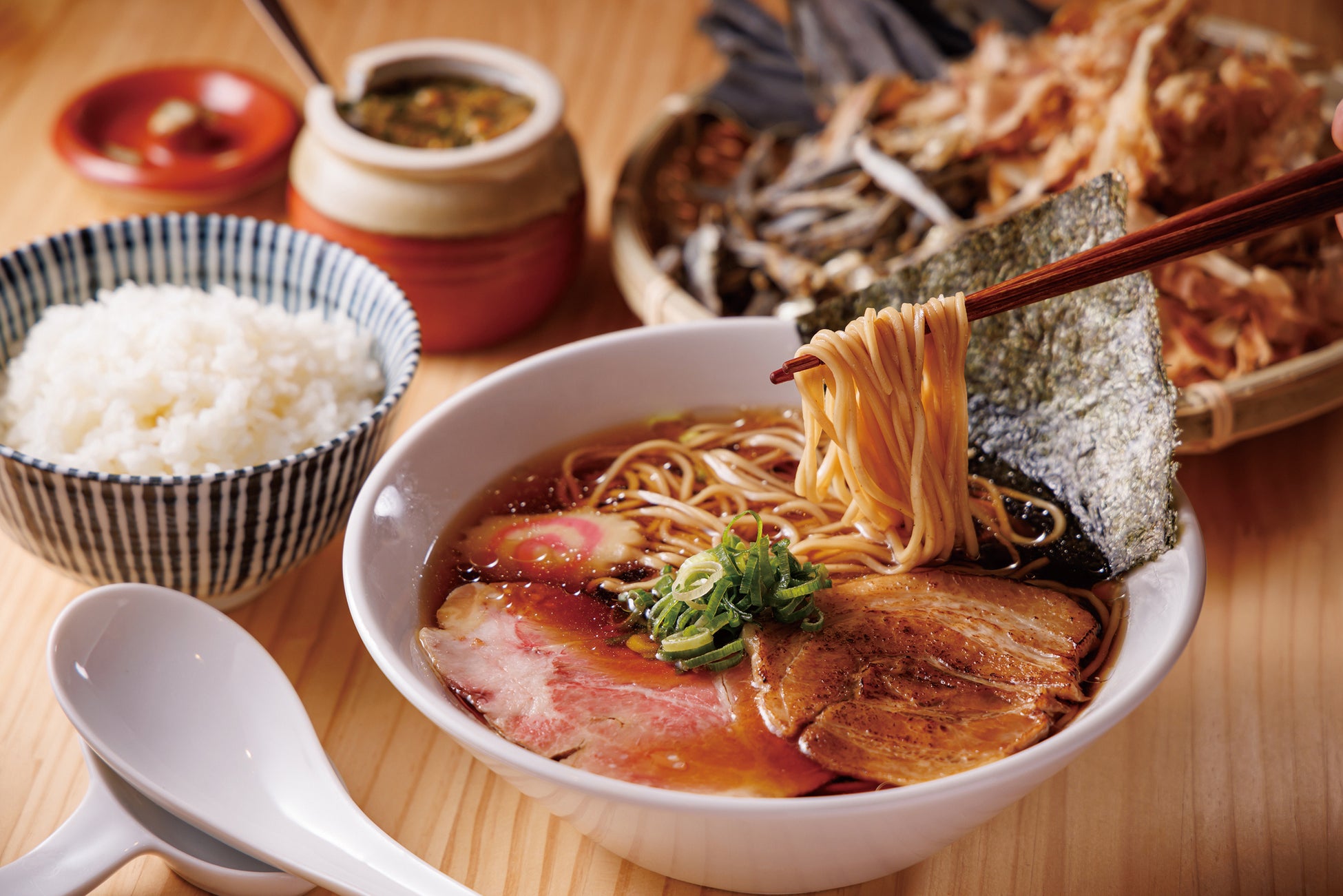 国産鶏と鰹と煮干から抽出されるクリアながらも力強い味わいの極上ダシに熟成醤油の豊かな香りをあわせ、一杯のラーメンに深い味わいを演出しました。