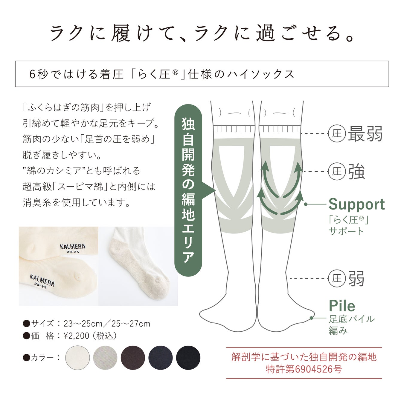 独自開発の足の負担を軽減する編地「らく圧®」を採用したり、長く愛してほしいからこそ、こだわり抜いた高級素材を使用。