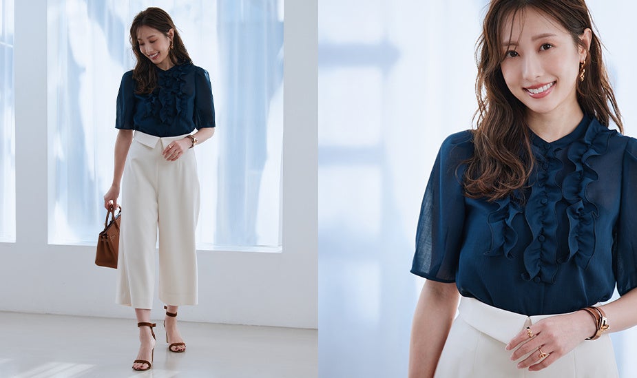 第二弾は〝フリリッシュ〟シアーブラウスとハイウエストリバースガウチョパンツの2アイテム。