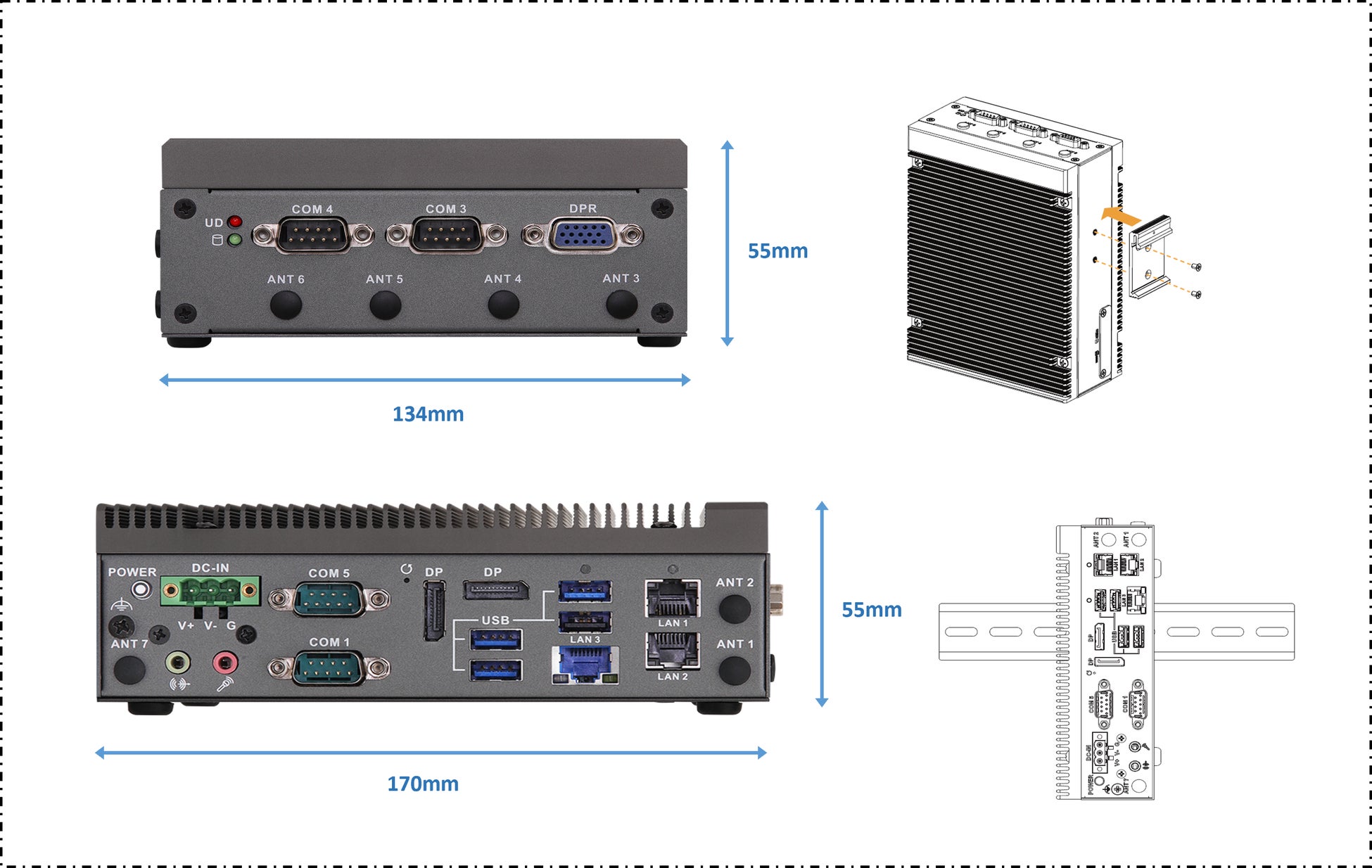 筐体寸法:For Basic SKU 55(W) x 170(H) x 134(D) mm