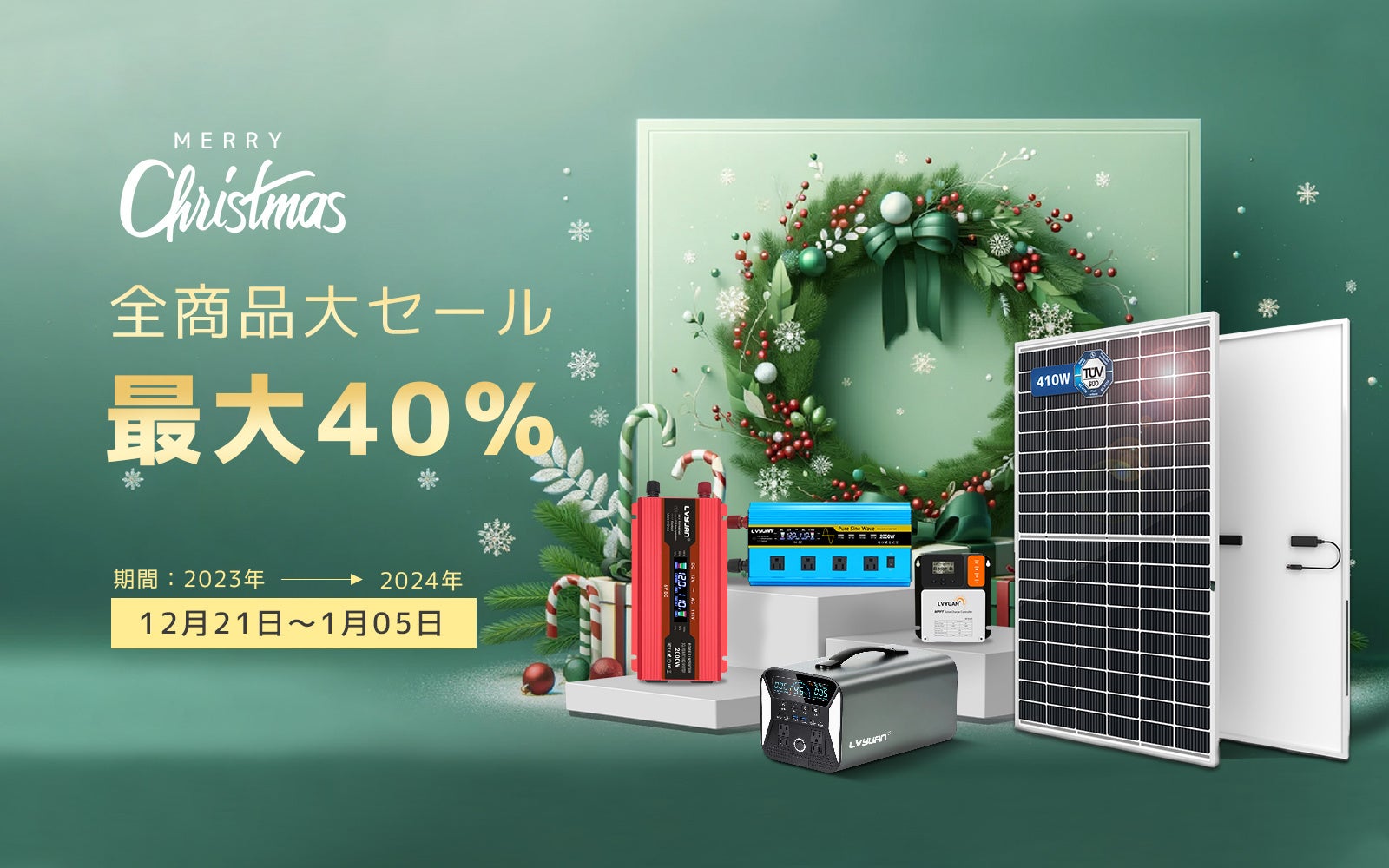 このクリスマス大セールは数量限定となっておりますので、お早めにご注文ください。環境への貢献とお財布に優しいこの機会をお見逃しなく、ぜひ太陽光発電機器の導入をお考えください。素敵なクリスマスとエネルギー効率の良い新しい年をお過ごしください!
