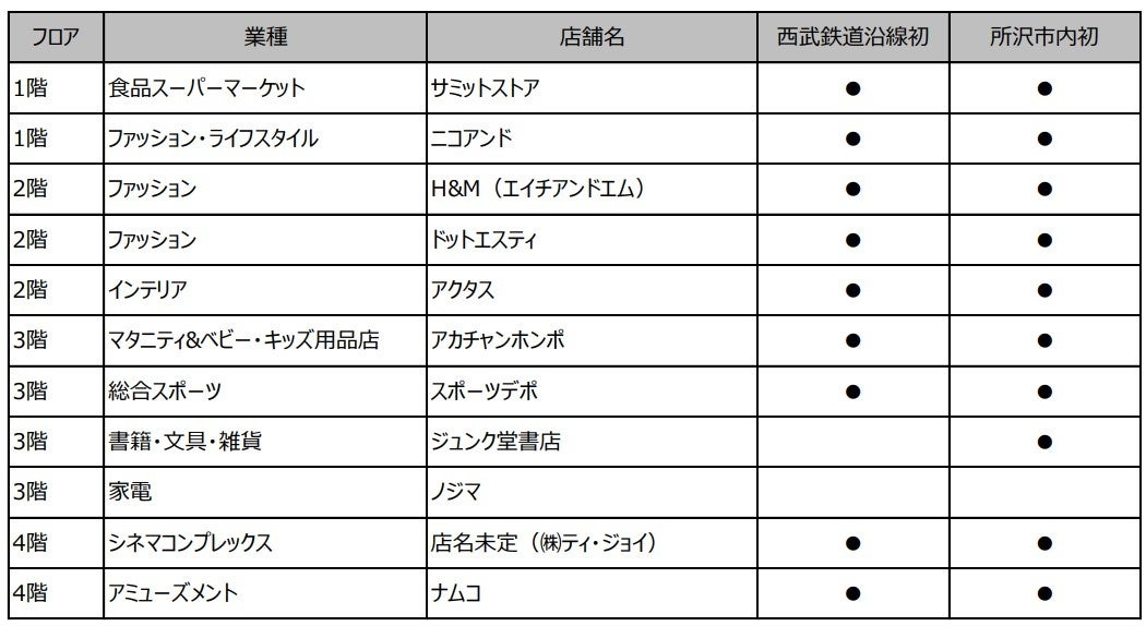 ※西武鉄道沿線において西武グループが運営する商業施設への初出店