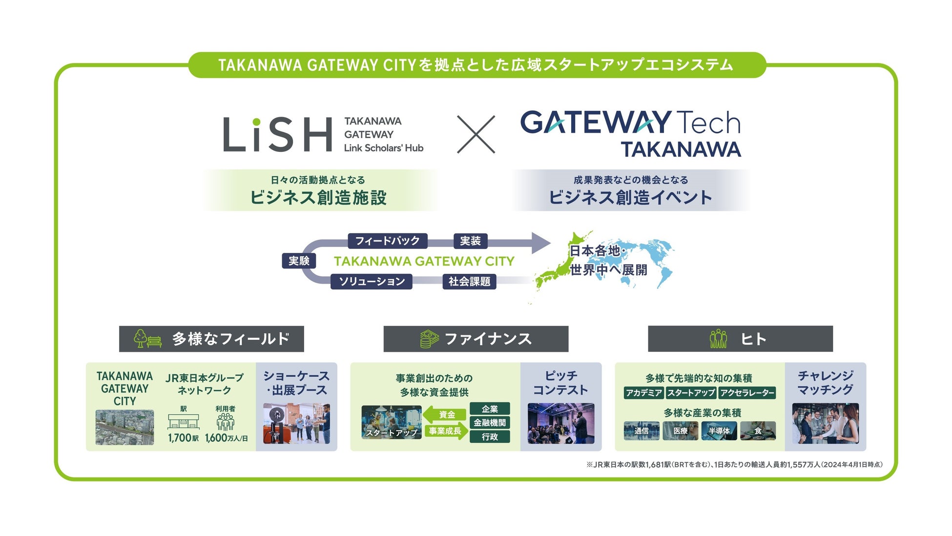 2025年3月にまちびらきを迎えるTAKANAWA GATEWAY CITYでは、本イベントと、ビジネス創造の核となる施設「TAKANAWA GATEWAY Link Scholars‘ Hub(以下、LiSH)」が一体となって、スタートアップと大企業・アカデミアのマッチングおよび地球規模の課題解決に繋がる新たなソリューションの創出を支援します。スタートアップ支援のための多様なメニューを揃えたビジネス創造施設「LiSH」のメンバーとして、松竹グループも参画いたします。