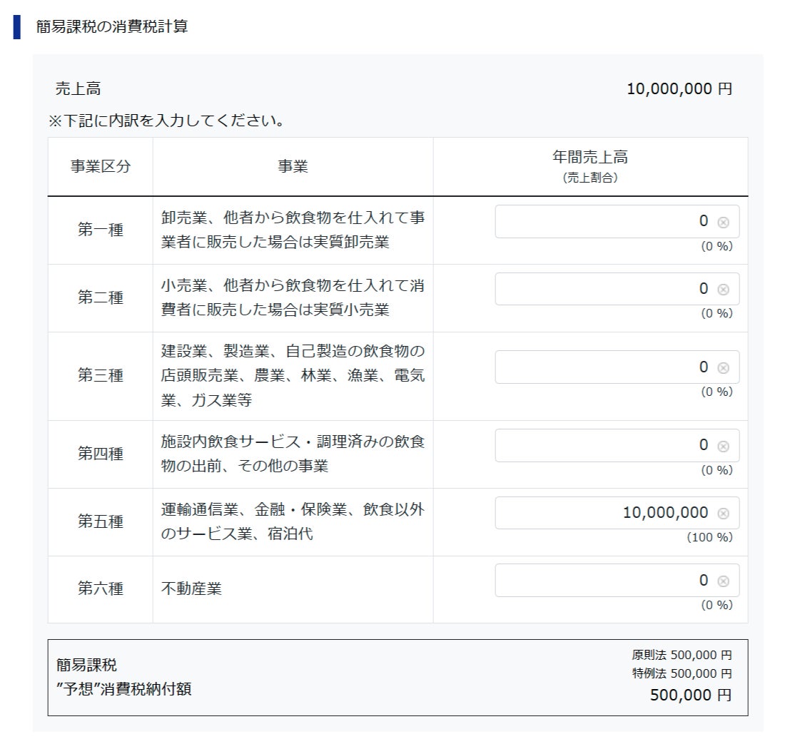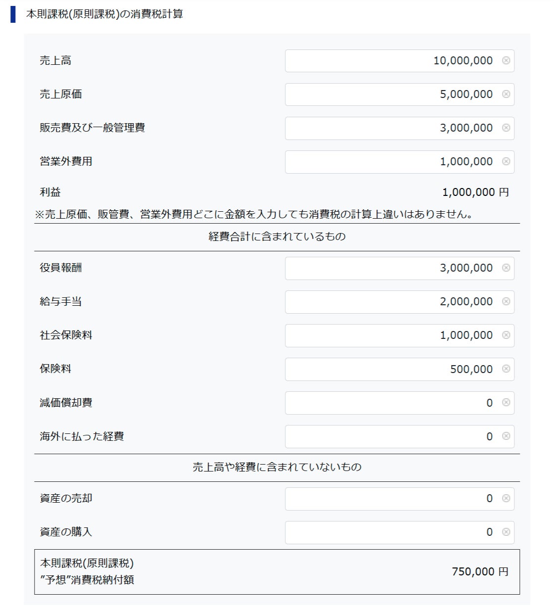 シミュレーションの際は、本則課税と簡易課税で入力するフォームが異なります。なお、それぞれに入力し、結果を比較することが可能です。
