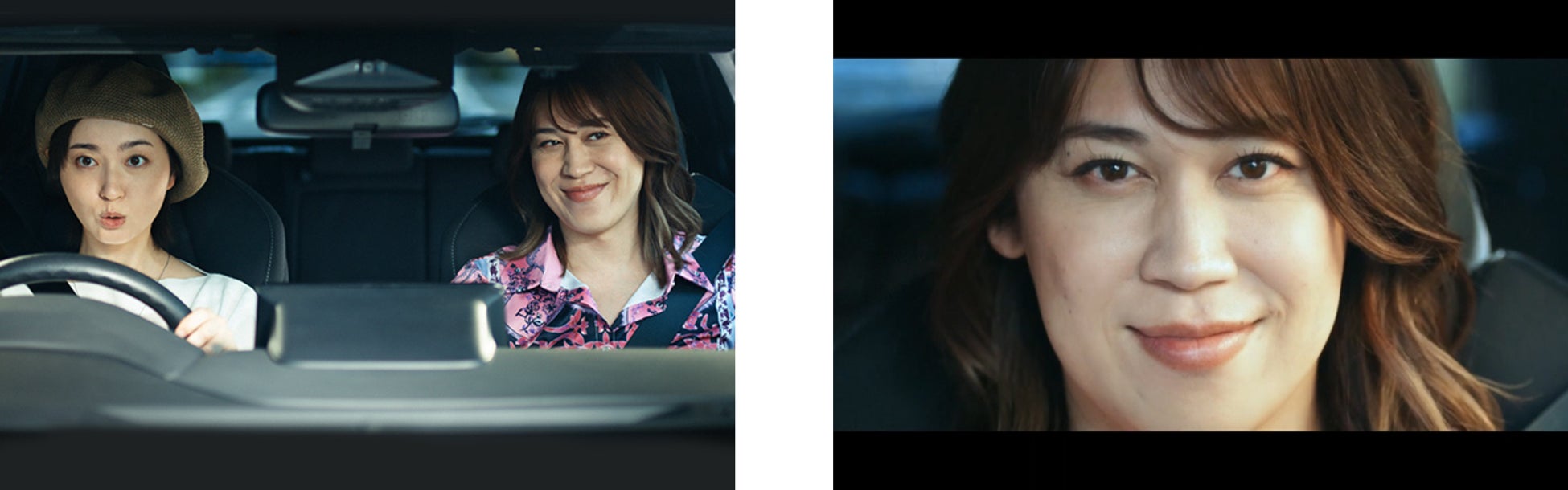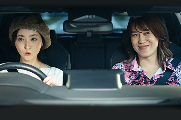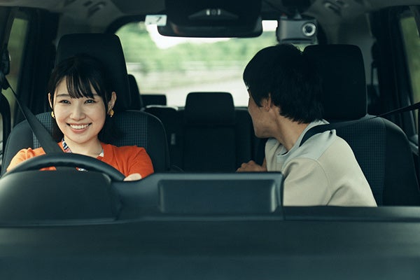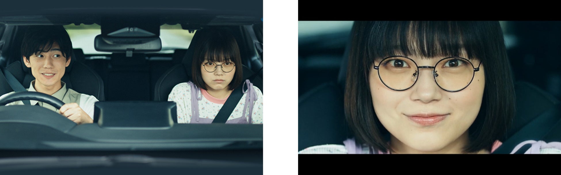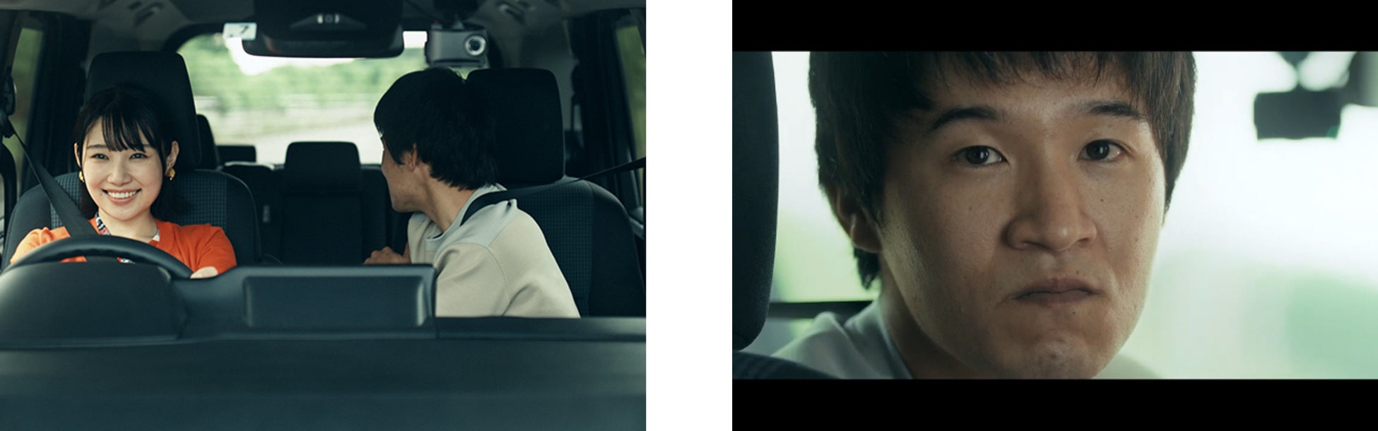 運転する女性の恋バナをする友人関係の2人。助手席の友人は言い寄ってくる男性のタイプを予測して女性に警告をします。実は先が見える友人の正体は、擬人化された「プロアクティブドライビングアシスト」。運転状況に応じたリスクの先読みを行い、彼女の運転をサポートしていたのでした。