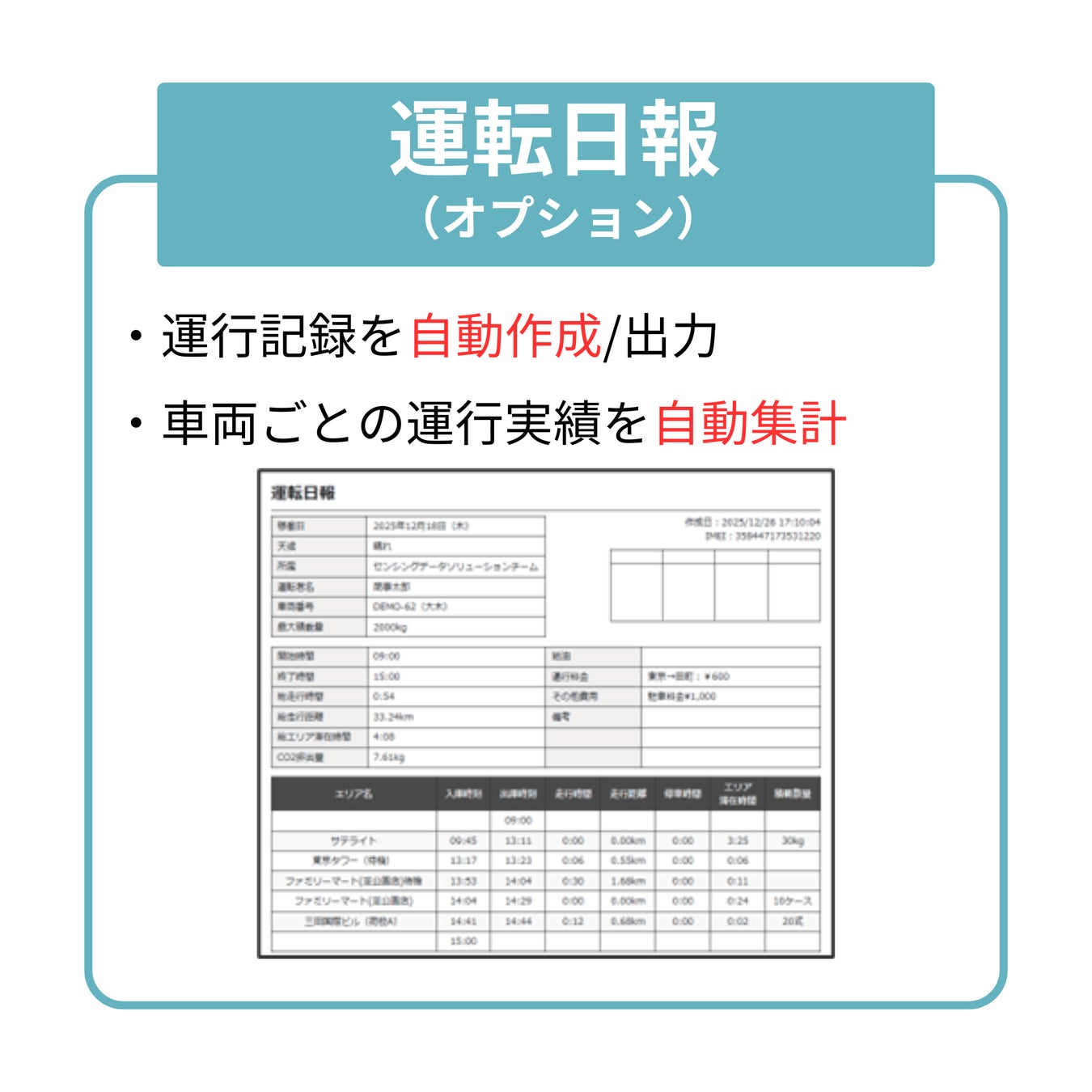 ・ドライバーによる手入力や報告は不要