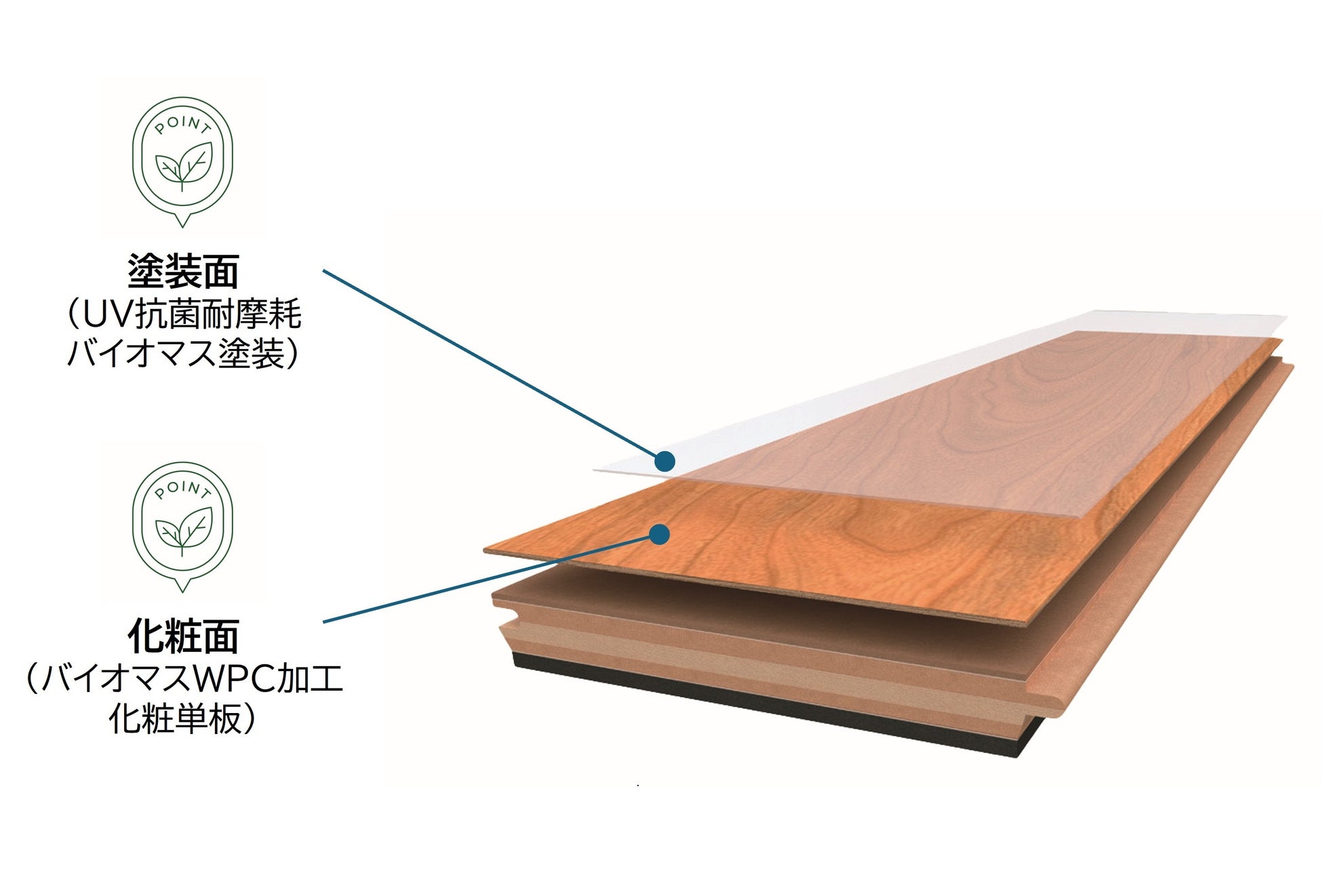 土足対応WPCフローリングに、バイオマス由来材料を用いた『バイオリーフ』シリーズを追加