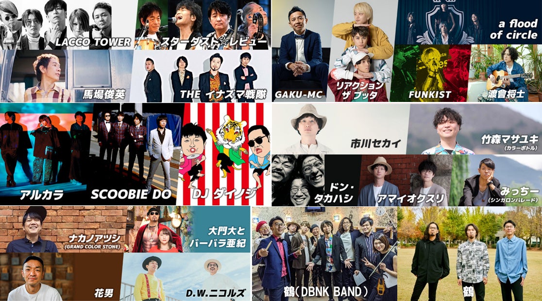 鶴(DBNK BAND)/アルカラ/GAKU-MC/STARDUST REVUE スターダスト☆レビュー/馬場俊英/LACCO TOWER/リアクション ザ ブッタ