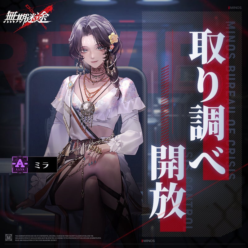 『無期迷途』とは罪悪都市で展開される物語を題材にしたプリズン戦略RPGスマホゲームです。ゲーム内ではキャラクター育成、取り調べ、高戦略性バトルシステムを含む要素をお楽しみいただけます。プレイヤーは「ミノス危機管理局の局長」として、魅力的な特殊能力の使い手「コンビクト」たちを連れ、悪の勢力が蔓延る狂瞳病に乱された世界で、様々な事件の真相を暴いていきます。ディスシティで暴れている危険なコンビクトを逮捕し、様々な事件を調査・鎮圧していくことで、プレイヤーはこの世界の真実に触れることになるのです。