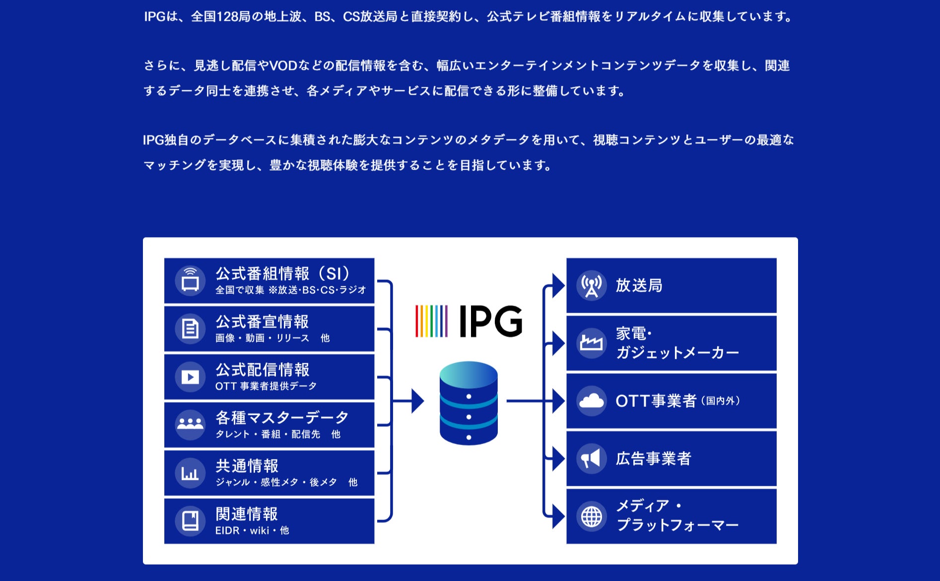 公式番組情報メタデータ運用を行うIPG、コーポレートサイトを全面リニューアル