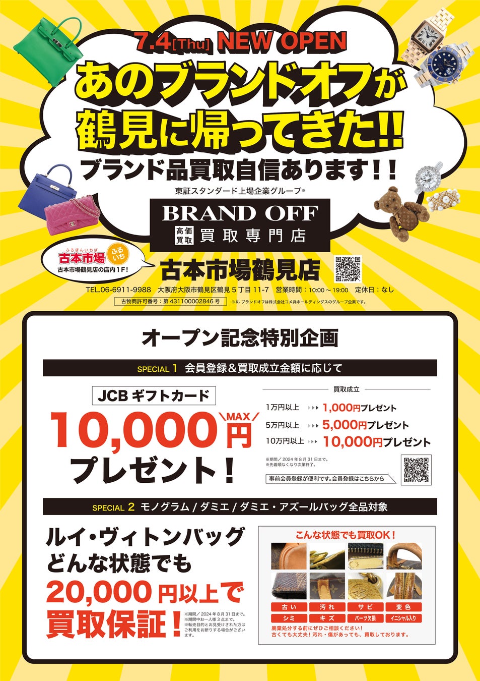株式会社テイツーがブランド品の買取を開始!「ブランド買取専門店 BRAND OFF 古本市場鶴見店」が大阪市鶴見区に7月4日(木)オープン