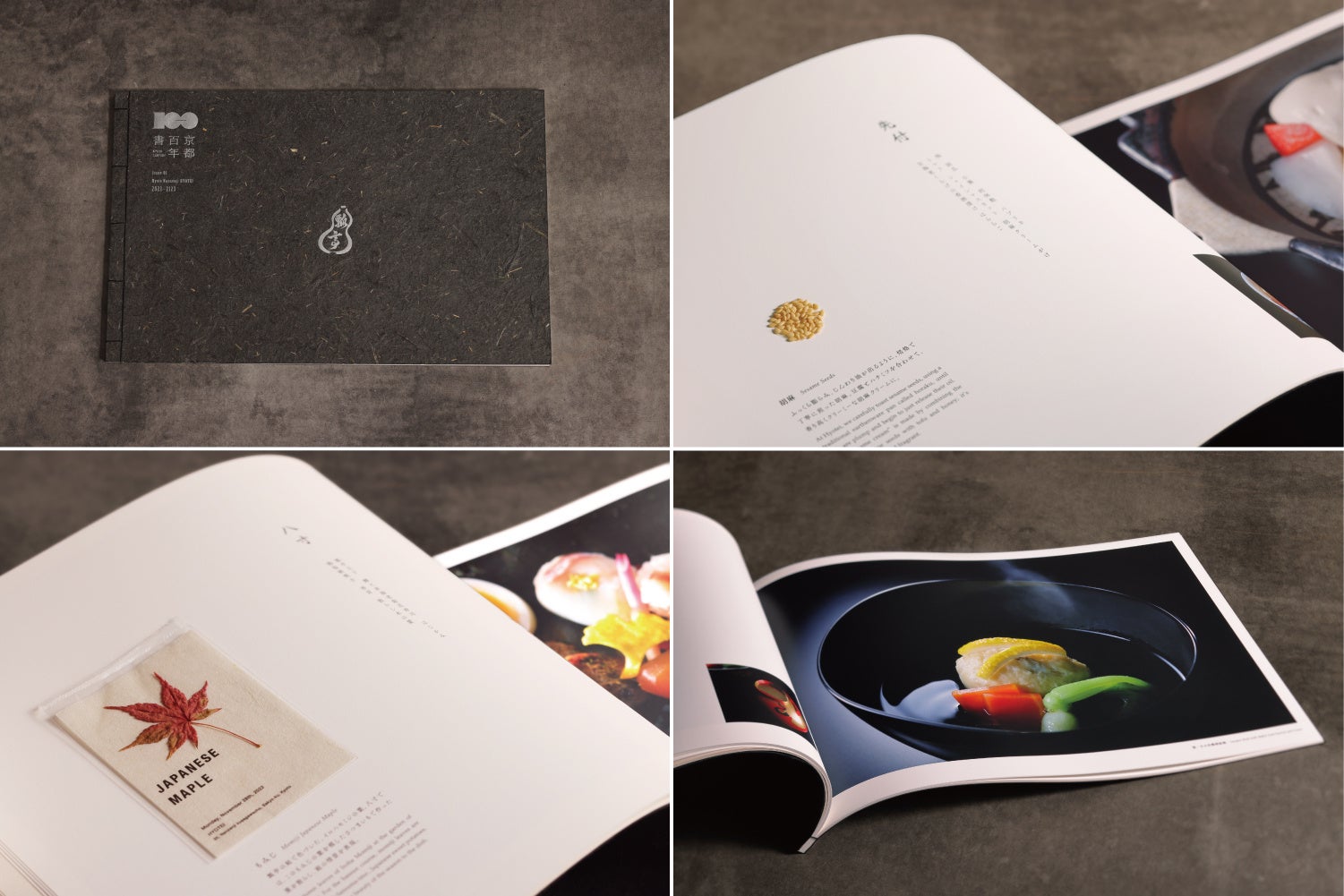 本質を守りながら時代に合わせて変わり続け、受け継がれる京文化の〝今〟を記録し、100年先の人々に京文化を伝えることを目的としています。空気までも映しだす写真とともに、素材や道具、ゆかりのものを丁寧に貼り込み、視覚だけでなく五感で今の京都を感じる仕掛けに。手ざわり感を大切にした世界限定100冊の極められた本です。