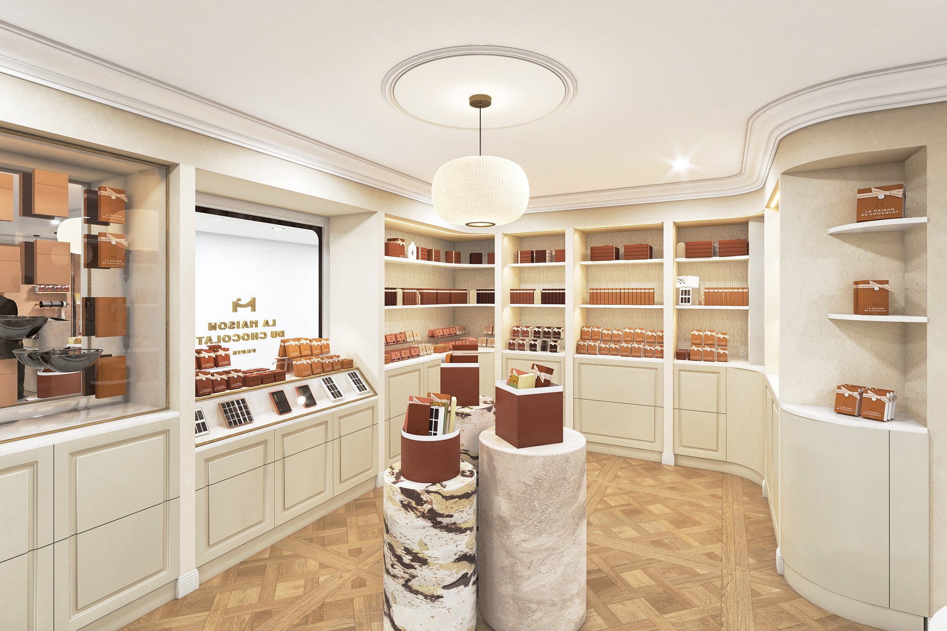 「ラ・メゾン・デュ・ショコラ ニュウマン高輪店」はグローバル展開するメゾンの中でも東京のみの、世界初となるカフェ併設型のコンセプトショップです。白を基調として、アートやショコラの香りで彩られた洗練された空間は、まるでパリのアパルトマンを訪れたような心地よさ。店内では広々とした空間でゆったりと買い物をお楽しみいただける他、併設された45席のカフェスペースでは、ここでしか味わうことのできないシグネチャーメニューをご賞味いただけます。