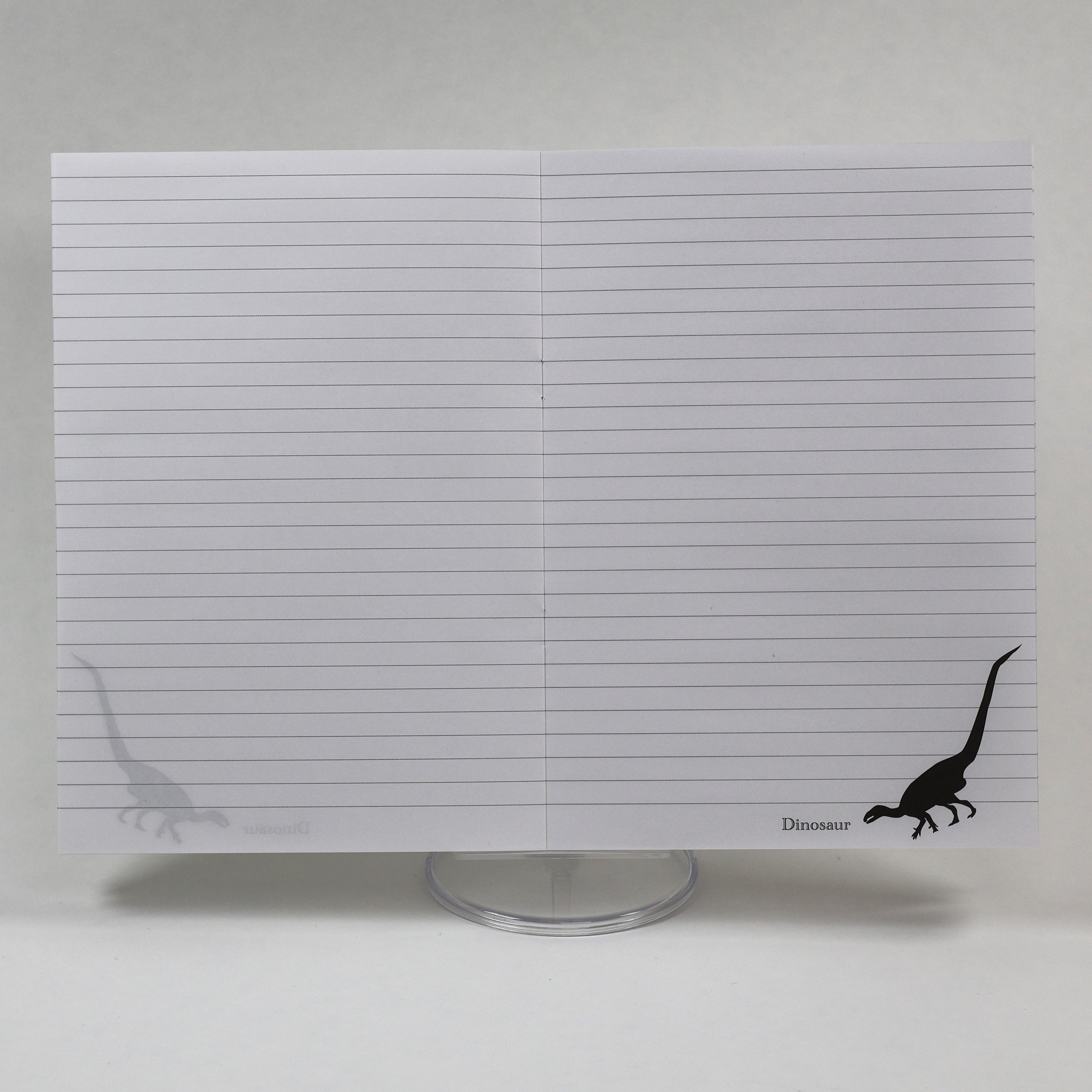 よ~く見ると恐竜のシルエットが浮かび上がる、路線図×アートをテーマにした、持ち運びに便利なA5サイズの中綴じノートです。中身は使いやすい罫線ノートで、右下には恐竜のシルエットをプリントしています。